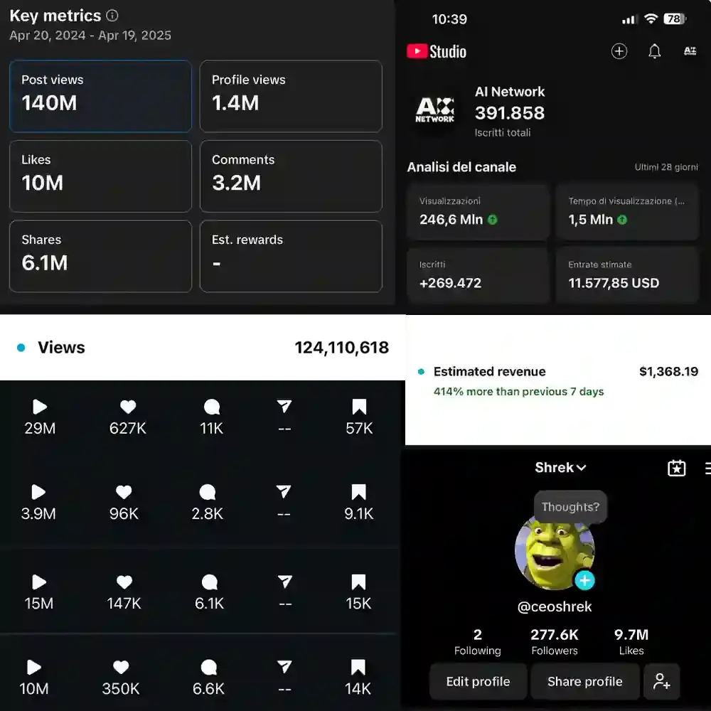 "Iโve tried different niches on YouTube and TikTok, but I never reached 10 million views. I decided to buy the course, and within 7 days on a brand-new YouTube channel, I hit 11 million views. Just 3 days later, I reached 100K subscribers. On TikTok, I launched multiple channels, each generating millions of views. The course walks you step by step on how to create successful videos from A to Z."